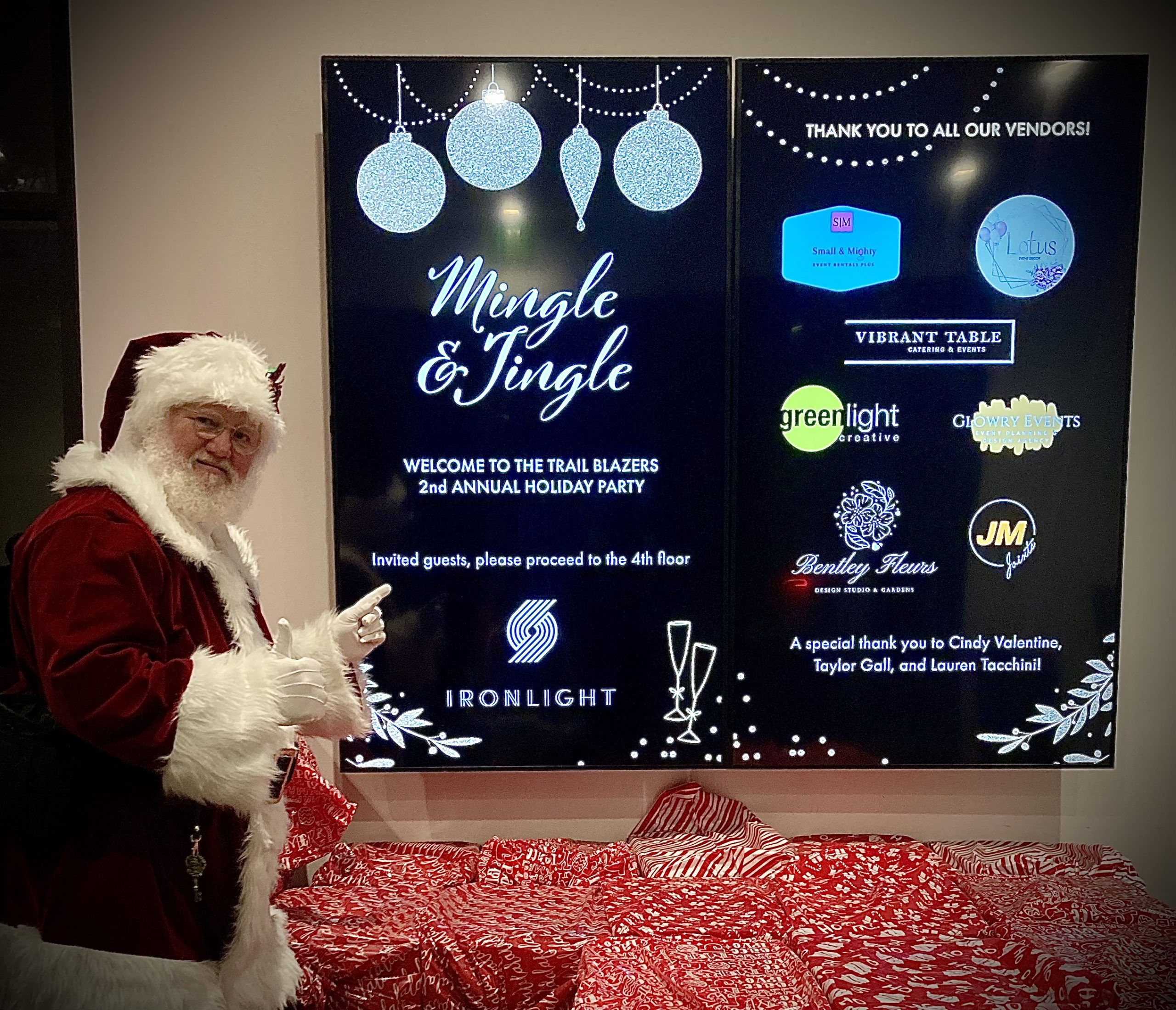“Santa Rod was a fantastic addition to our Portland Trail Blazers holiday party. His authentic Santa presence immediately set the tone for the evening and brought a wonderful sense of fun and nostalgia to the event. He took time with everyone, posed for photos, shared laughs, and made each interaction feel personal. Our staff truly enjoyed the experience with Santa Rod and Sprinkles the Elf! They made celebration memorable for everyone who attended.”